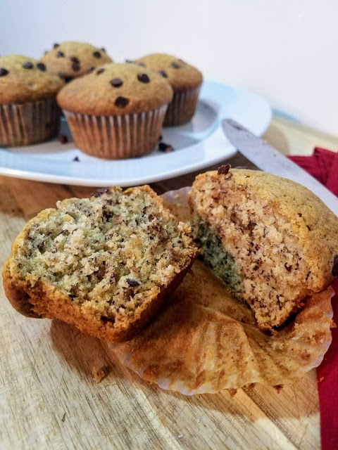 Brown bananas are a weekly output in our apartment. For whatever reason, we never manage to buy the bunches at the peak ripeness so that we can eat them all week long. Either they are too green and you can’t eat them right away, or they are too yellow and turn brown at too fast a rate. There are only two of us, so we’d each have to eat two bananas a day to keep up with the ripening pace most weeks! One week in particular, we had about four bananas that were past the point of being enjoyable, especially for hubby – he absolutely hates overripe bananas! It always feels like such a waste, until I pull the black bananas out of the freezer a few weeks later to bake something magnificent.