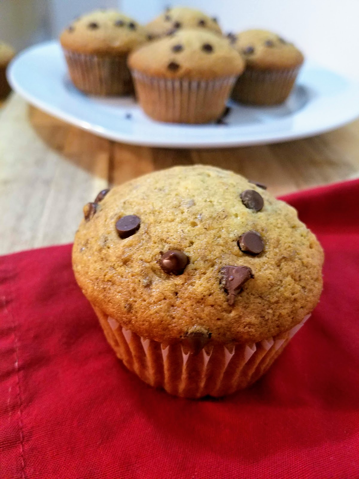 Preheat oven to 350 degrees. Cream together 1/4 cup coconut oil and 3/4 cup sugar. Once the sugar is no longer granular, add 1 flax egg and 1/4 almond milk and mix. Then add 1 1/4 cup flour, 1/2 tsp baking soda, 1 tsp cinnamon, and pinch of salt and mix together. Next, mix in the mashed banana and 1/2 vanilla until incorporated. Spoon into a greased or lined muffin tin until each cup is about 3/4 full. Top with some dairy-free chocolate chips if desired. Bake for 25 minutes, or until a toothpick comes out clean. Let cool completely. Enjoy!