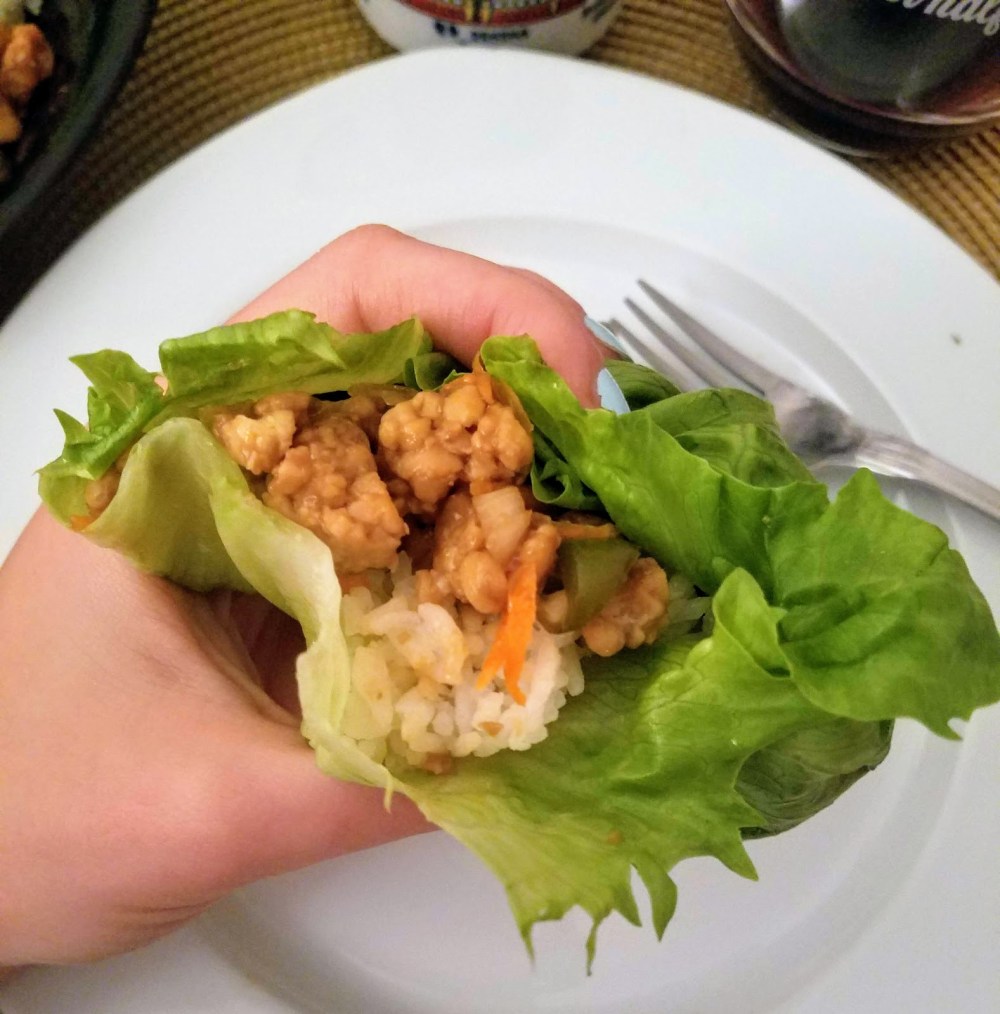 Tempeh is always my go-to ingredient when I am trying to vaguely imitate ground meat, mostly because it crumbles well while still keeping its form, and takes on the flavors of whatever sauce you’re using. If you’ve never heard of tempeh, it is made of fermented soybeans and has been eaten in Asia (specifically Indonesia) for hundreds of years. I’m very grateful because it was just what I needed to fill these lettuce wraps.