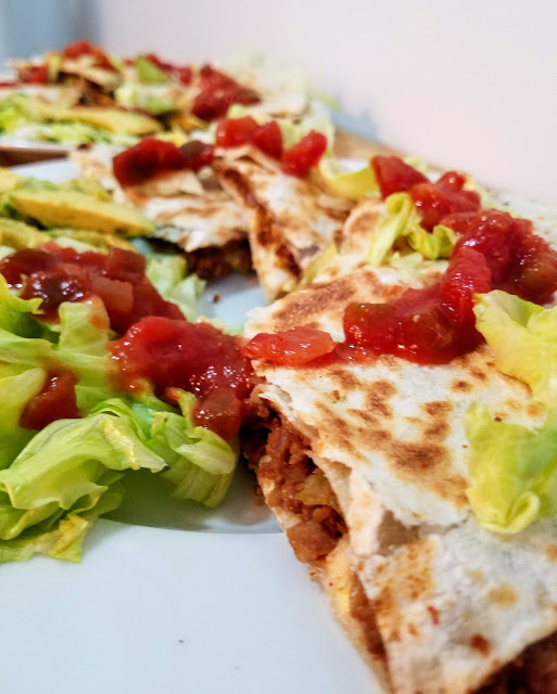 Makes 3 quesadillas (we each ate 1 1/2 because they were SO GOOD)