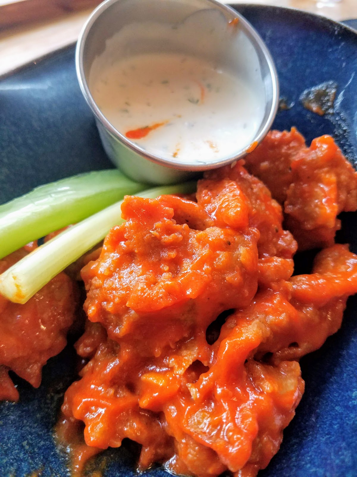 We started with a glass of 2016 Cabernet and a large order of Buffalo wings. I was forewarned by our lovely waiter, but these babies were on fire (literally and figuratively)! They were no joke. Hubby said he thought the sauce was better than any actual buffalo wings he had ever tasted. Made of seitan, the texture was spot on – a bit chewy, light, and the perfect vessel for the signature spicy orange sauce. Honorable mention goes to the vegan ranch dip, which was totally necessary, and also had a depth of flavor and a perfect creamy texture all it’s own.