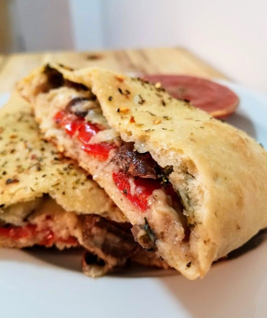 mushrooms, red bell peppers, spinach, artichokes, veggie crumbles, or whatever stuffings you want for the inside of your calzones