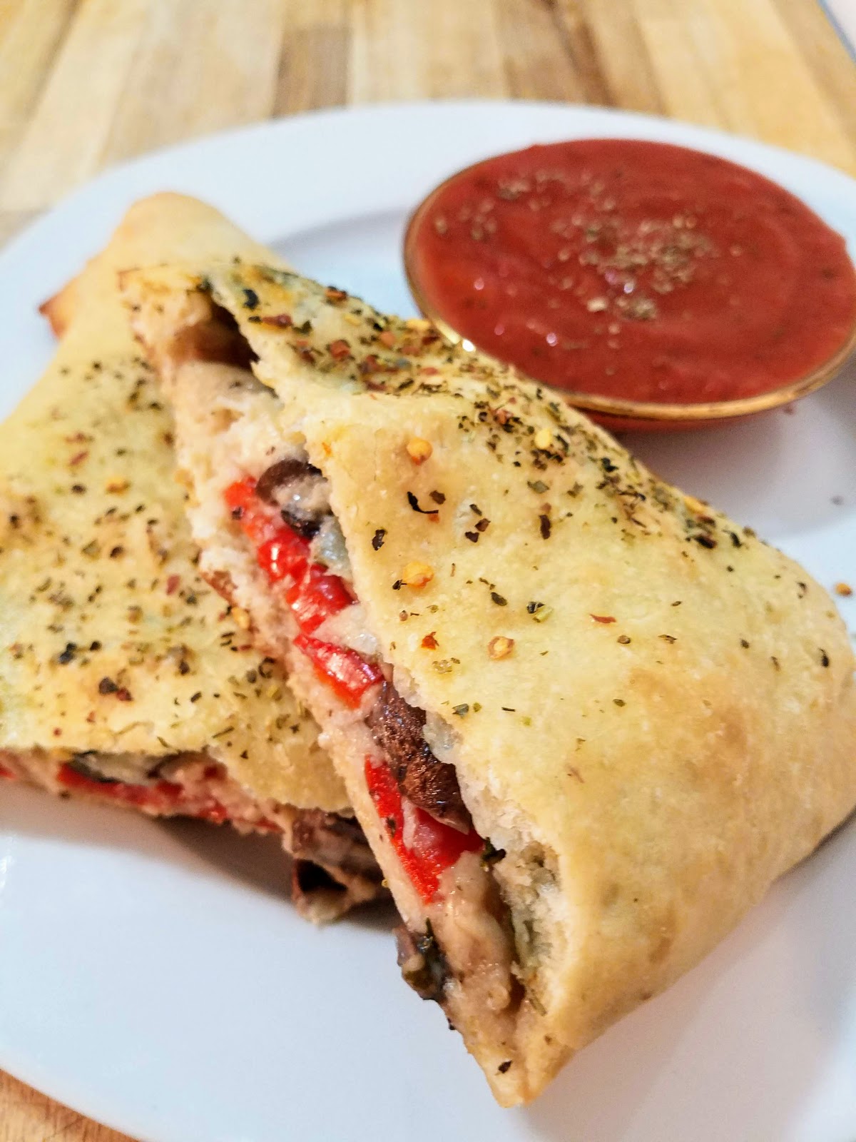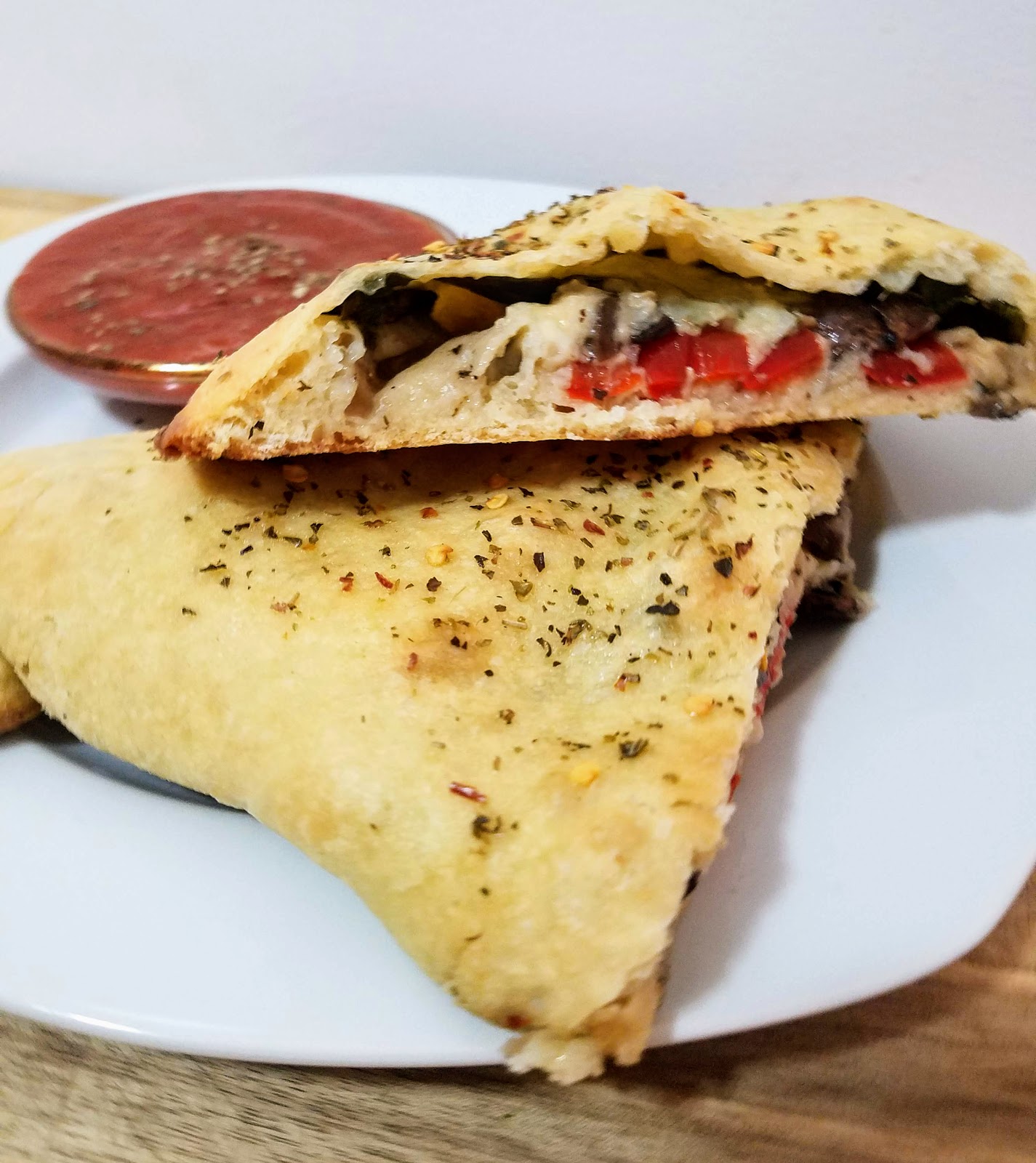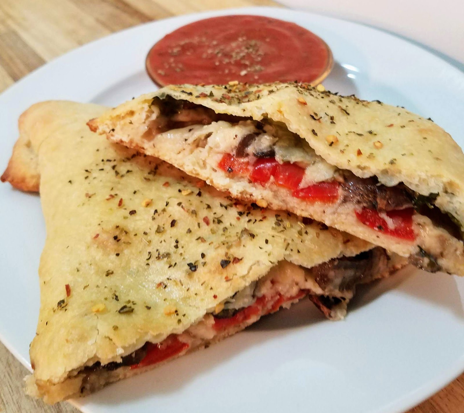 mushrooms, red bell peppers, spinach, artichokes, veggie crumbles, or whatever stuffings you want for the inside of your calzones
