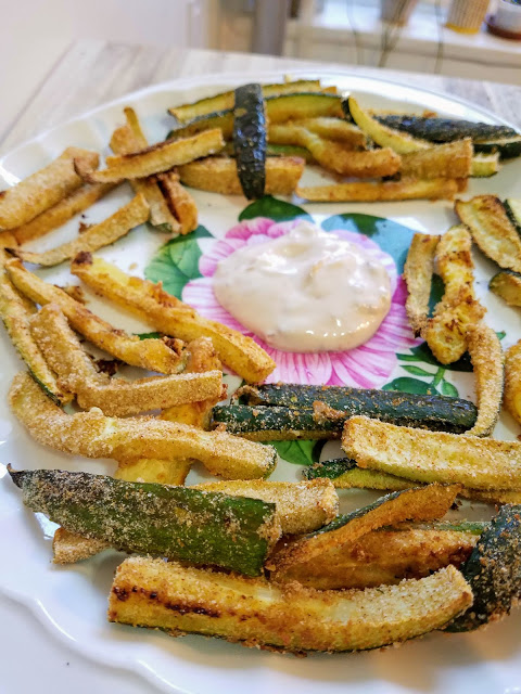 Zucchini = summer to me. My parents’ garden would yield so many zucchinis every year, and sometimes they would be the size of my thigh. We had zucchini in and with everything for most summers of my life. I love the delicious watery fleshy flavor of a freshly picked one. Squash is so versatile, as seen in my zucchini fritters recipe from a few months ago and the stuffed zucchini I made recently. I’ve seen people make cakes, breads, soups, stirfrys, muffins, zoodles, pancakes, and now fries …all out of zucchini!