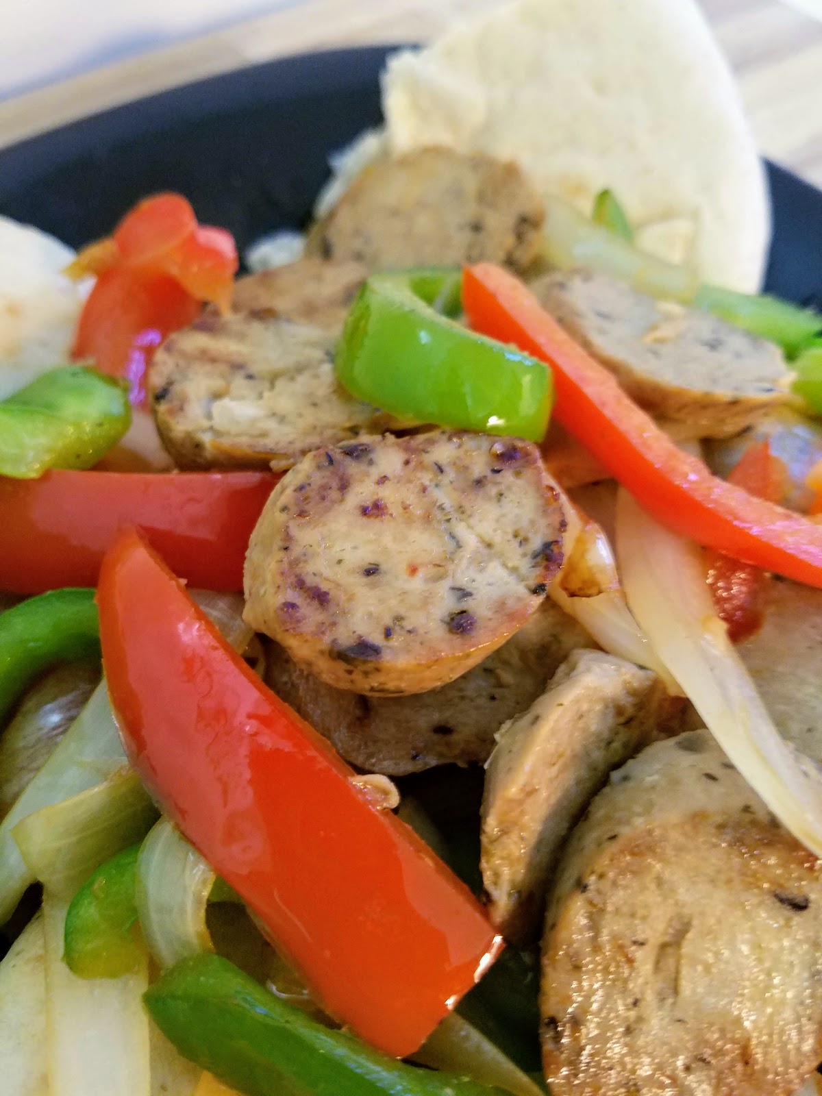 2-3 large veggie sausages (I used Lightlife Italian Smart ‘Sausages’)