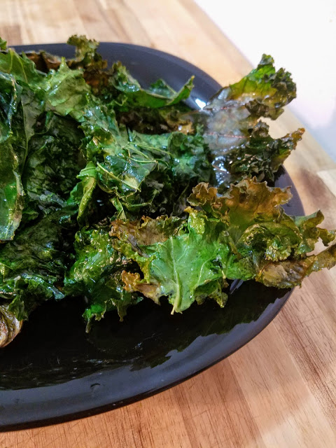 Preheat the oven to 350 degrees. Remove stems from the kale and cut the leaves into large pieces. Place kale pieces onto a baking sheet and drizzle with olive oil and sea salt. Massage the leaves until they are all coated with a very thin amount of olive oil. Bake for 10 minutes or until the edges are about to brown and the chips are thin and brittle. Transfer to a plate to cool and then eat immediately.