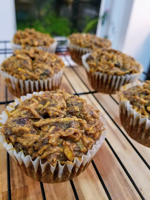 I halved the recipe and converted it into a plant-based version, but please feel free to double it back again to make 12 muffins.