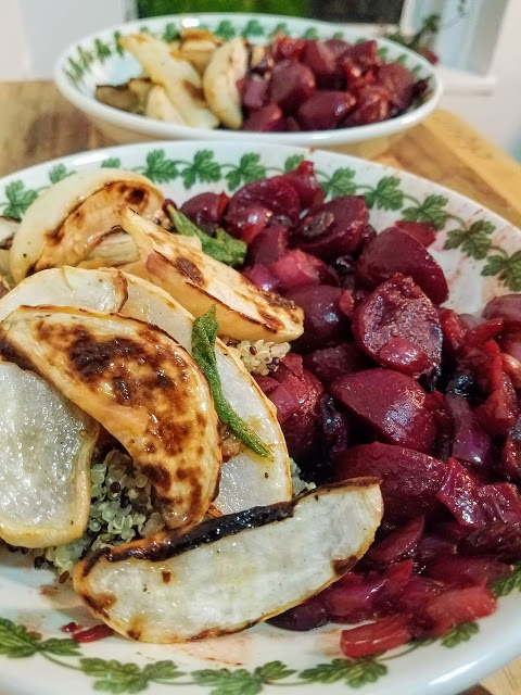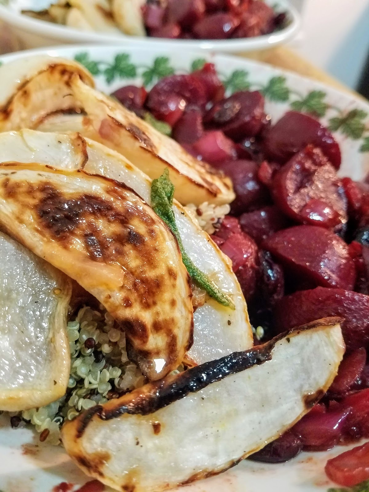 As pictured in the above photo, I served the roasted turnips along side a cranberry and beet chutney and some tri-color quinoa for a healthy and dynamic dish. They are a simple and delightful addition to any meal.