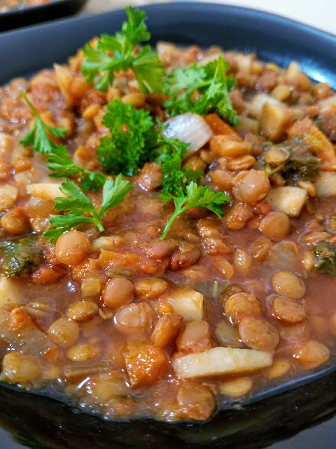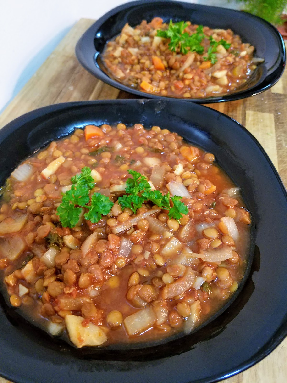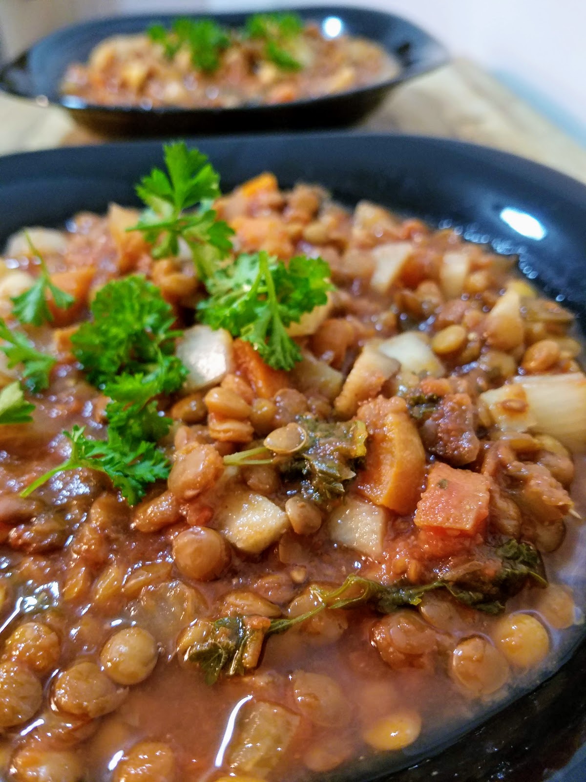 Many thanks to The Kitchn for the basis of this recipe, which as always, I adapted to what I had in the fridge and our personal tastes. It takes a whole work day of slow cooking to get those green lentils soft and velvety, so it’s the perfect back to work meal after the holidays! Just #setitandforgetit!!!