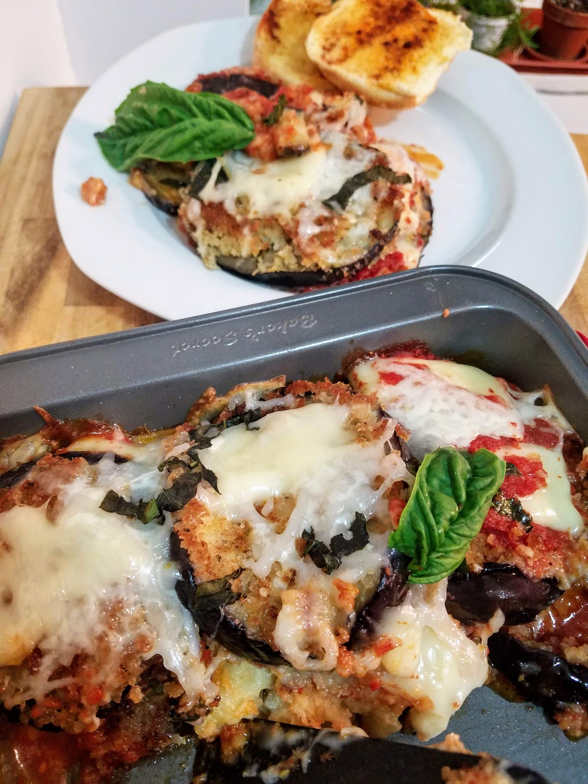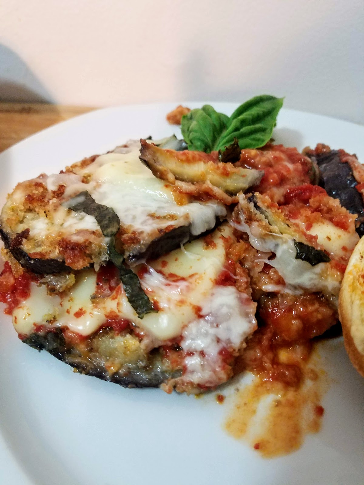Eggplant Parm is one of my all-time favorites meals. My aunts and mom all make amazing versions of this iconic Italian-American dish, so there’s a lot to live up to. I’m very proud of my vegan attempt – it was absolutely delicious, even without the eggs and cheese!