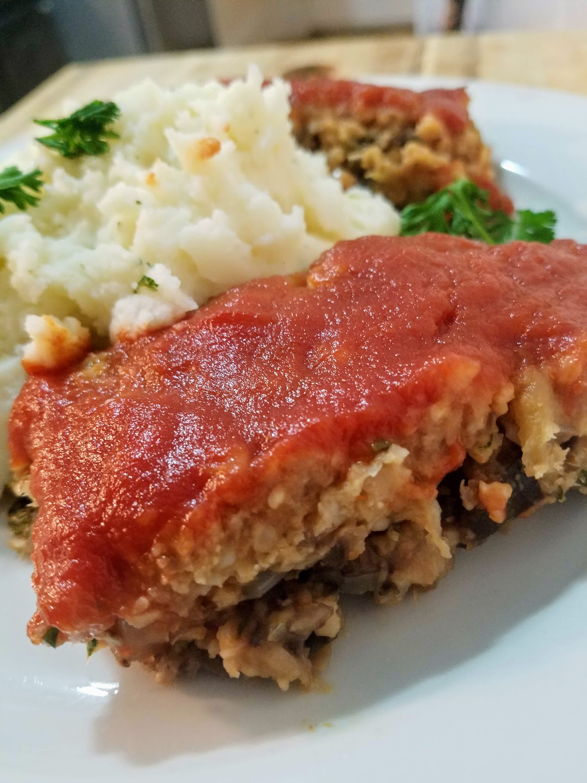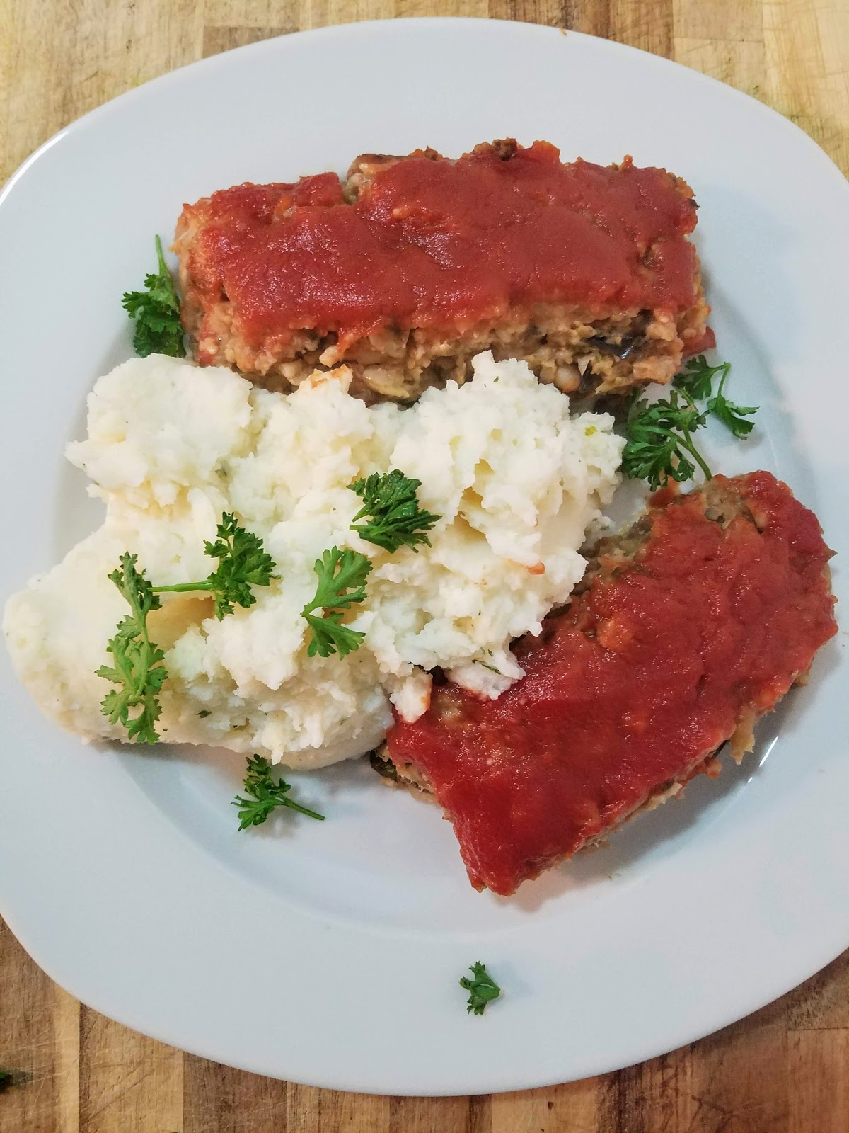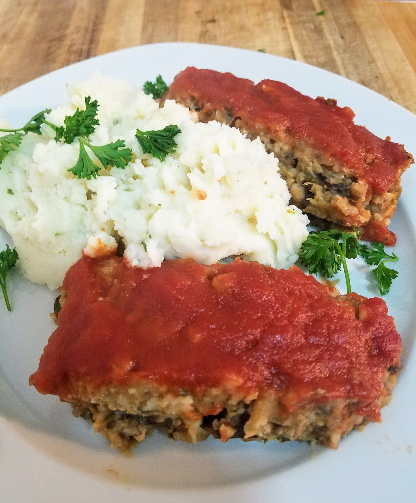 Meatloaf and mashed potatoes is an iconic American meal, isn’t it? My English hubby has many (negative) preconceived notions about meatloaf, and I was determined to change his mind about this dish – and with a vegan version at that! I chose to serve it with delicious, creamy mashed potatoes to help my chances, but I think he honestly enjoyed his first taste of “meat”loaf π