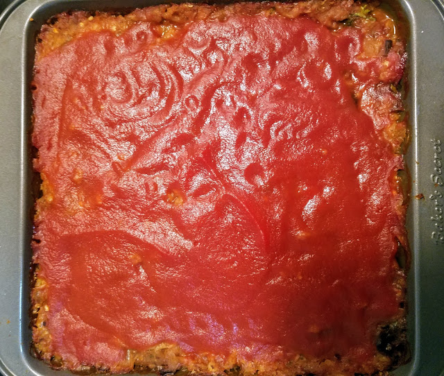 Preheat oven to 350 degrees and brush an 8″ square pan with olive oil. In a large skillet over medium heat, add 2 Tbsp olive oil, eggplant, onion, mushrooms, garlic, and a pinch of salt and saute for 5-8 minutes or until soft and lightly browned. If the eggplant sticks to the pan, add a sprinkle of water. In a large bowl, mix together cooked veggies, white beans, bread crumbs, brown rice, 1/2 cup tomato sauce, and fresh herbs. Perhaps taking multiple turns in a food processor, pulse mixture until just lightly processed and still a little bit chunky. Add processed mixture to prepared pan and pat down firmly with the back of a wooden spoon. Refrigerate for 1 hour. In a measuring cup, whisk 1 cup tomato sauce with brown sugar and pour on top of the chilled meatloaf. Cover with foil and bake for 45 minutes covered and another 20-25 minutes uncovered. Let sit for 15 minutes before serving.