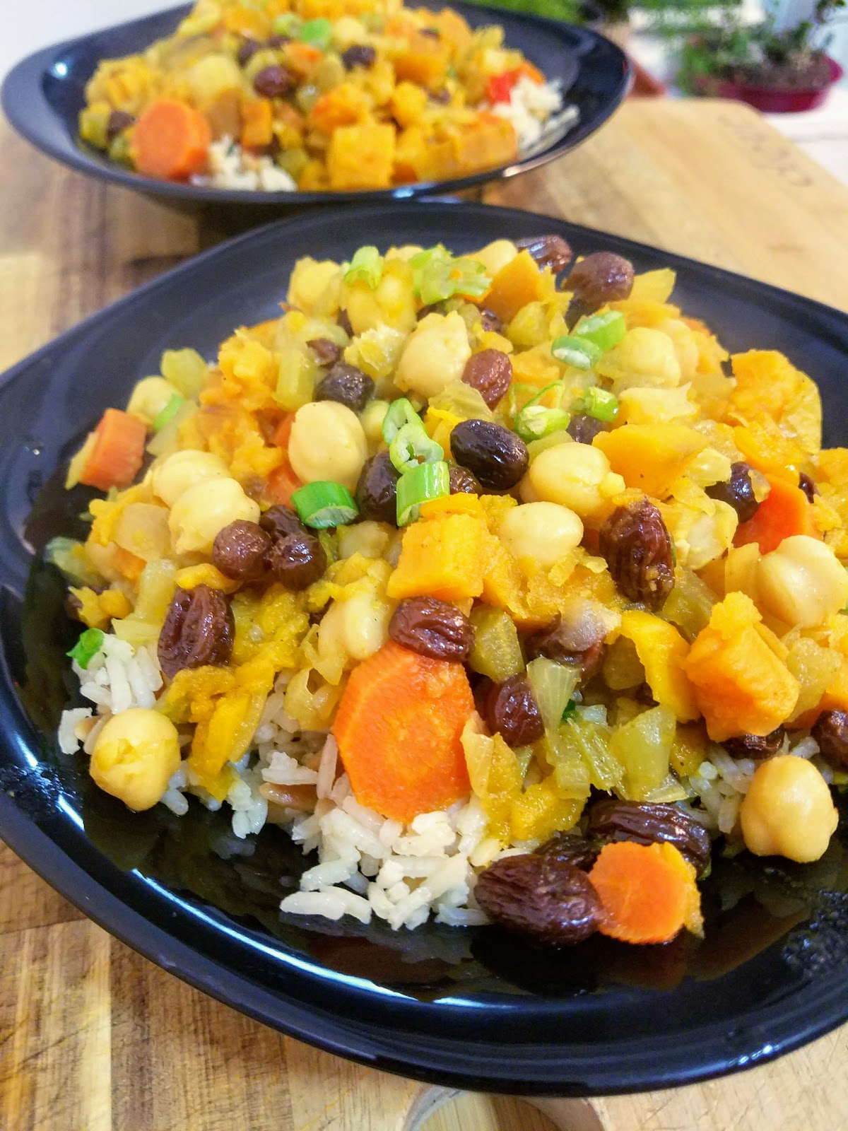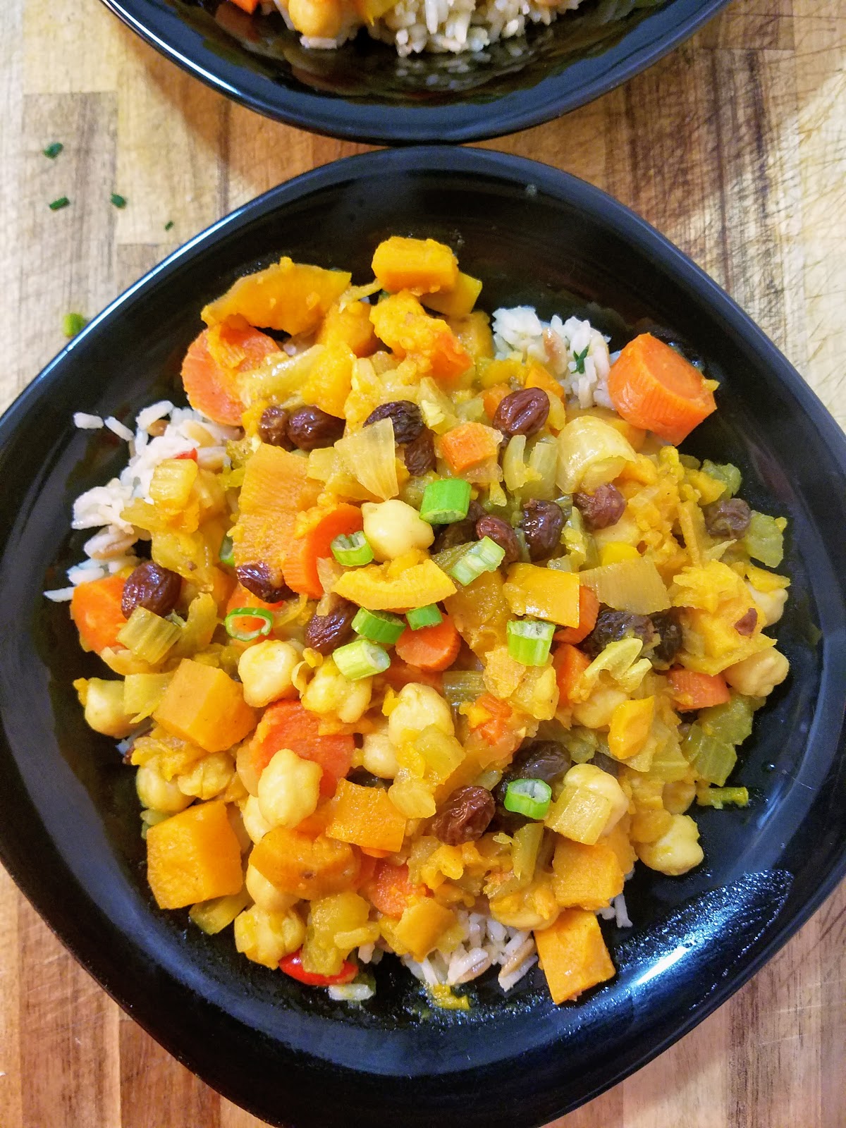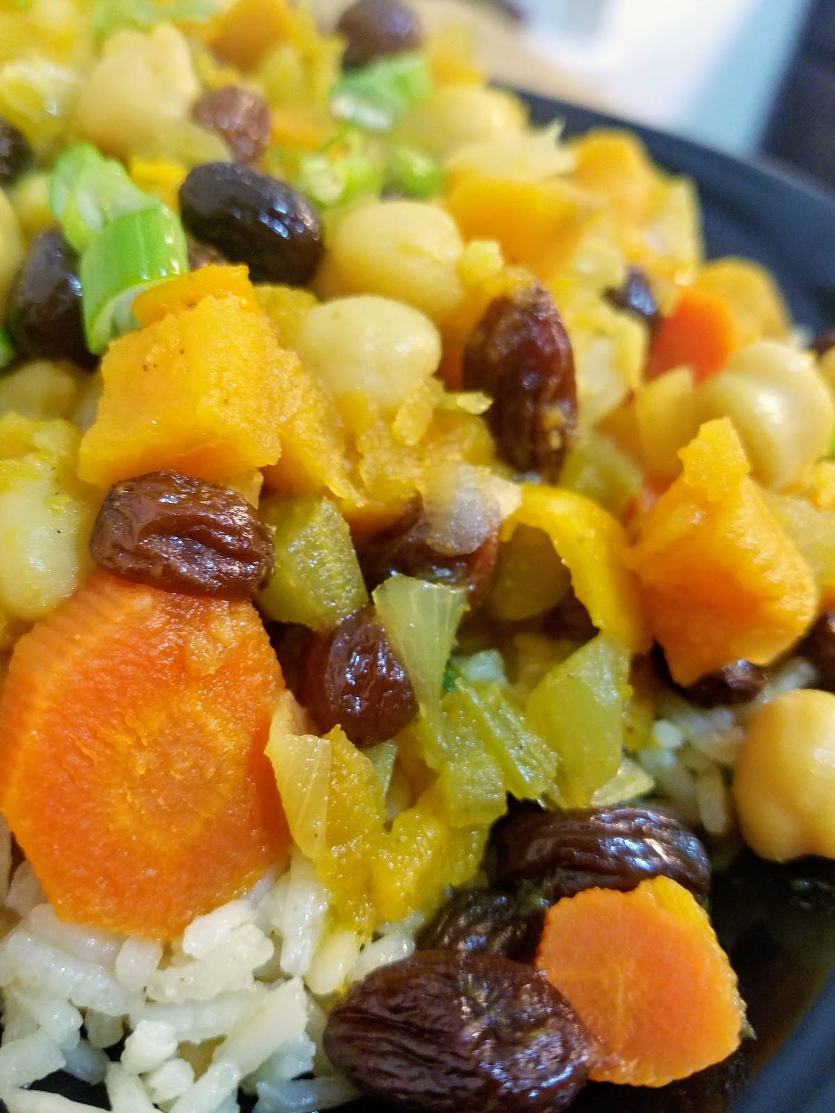The dish is typically slow cooked for hours over hot coals, but I didn’t have time for all of that. So, I adapted it for the “under an hour” rule I try to abide by. It combines sweet (dried fruit and maple syrup) and spicy (cumin, turmeric) flavors for a warm and aromatic experience. I added chickpeas for some extra protein. You could also add any number of vegetables like tomatoes, zucchini, or eggplant.