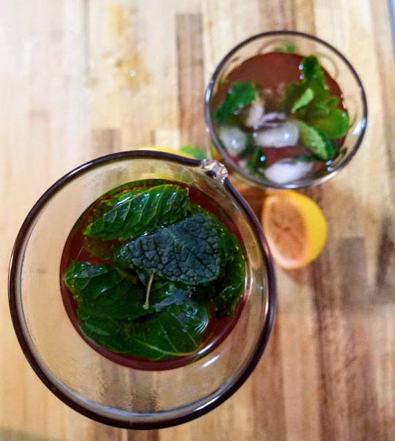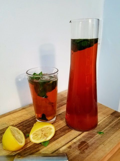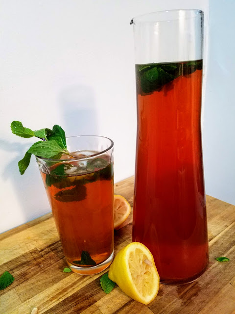 I had mint, and I had lemons, and I had tea bags, and I had a beautiful new pitcher, so I spontaneously decided to make my own sweetened Mint Iced Tea!