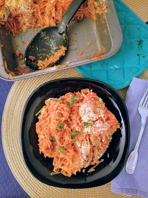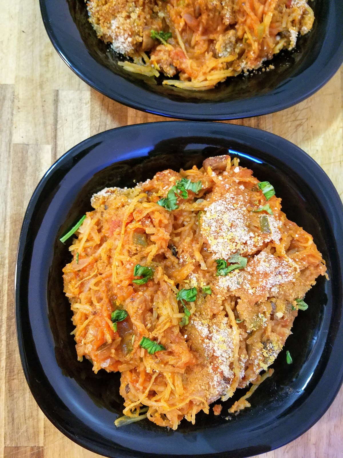 1 spaghetti squash, cut in half long ways and seeds scooped out