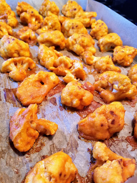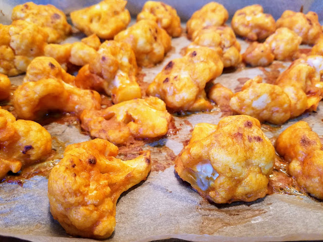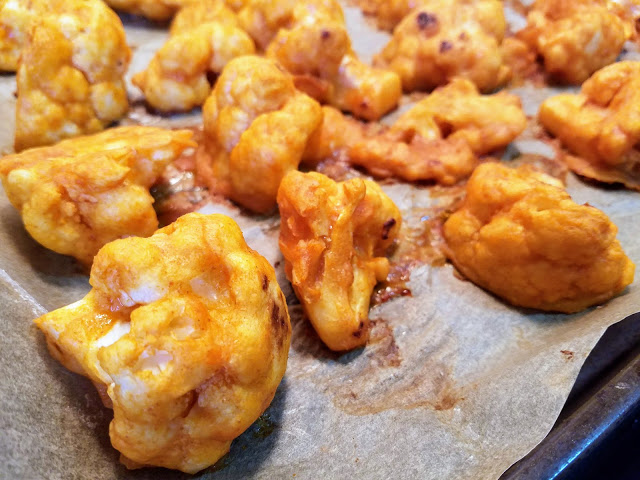 When smothered with buffalo wing sauce, these cauliflower florets are a great alternative for wings. I’m so excited to have this vegan substitute available for the next game night or viewing party. Plus, they’re baked, and they are vegetables, so they are good for you!