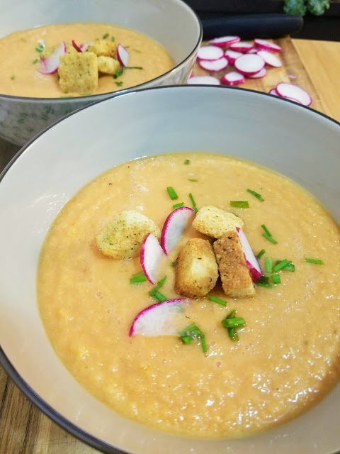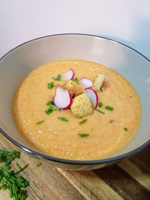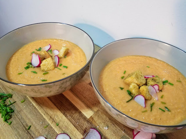 I suggest pairing it with avocado or radish toast (recipe coming soon! see pics here), or just topping it with croutons and fresh chives. It’s also cute and yummy served as an hors d’oeuvres gazpacho “shot” at parties! Give it a try and let me know what you think!