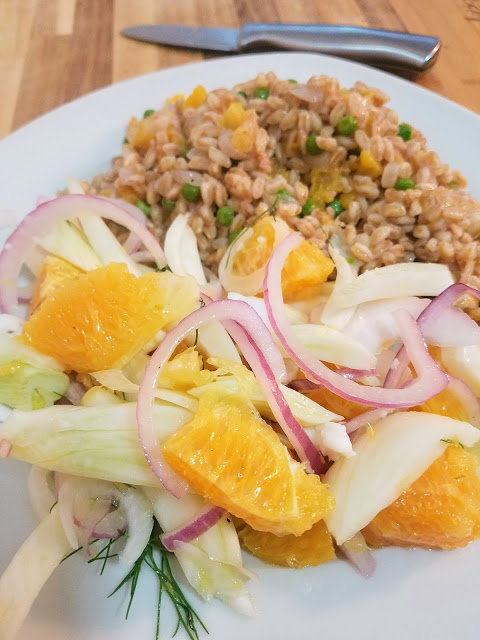 You could use blood orange instead of a regular navel orange if you’d like, and you can obviously omit the feta if you can’t find the vegan version in your local store. If that’s the case, add more salt in the seasoning process. We ate ours with my butternut squash farro (see above) which was the perfect warm, creamy compliment to the cold and crunchy salad.