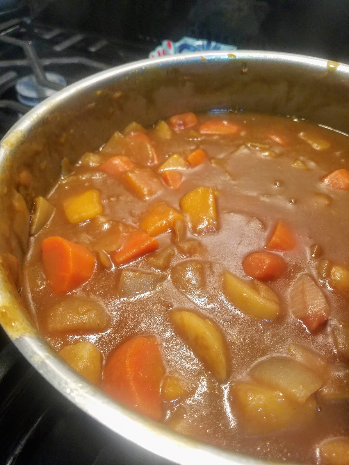 Below is a picture of the package/brand of Japanese curry I used. I bought the “hot” variety, but it wasn’t too spicy. It was just warm and absolutely delicious. We made enough for several rounds of leftovers. It gets better every day!