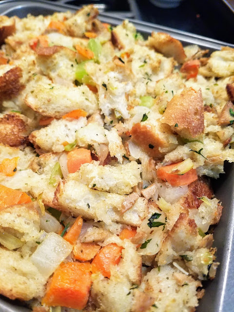 Stuffing! The absolute highlight of Thanksgiving, without a doubt. It’s truly undeniable that stuffing makes the entire meal and is what everyone is really looking forward too. It’s seems so backwards that most people probably never eat stuffing outside of the Thanksgiving meal + leftovers, especially since it is so universally beloved!