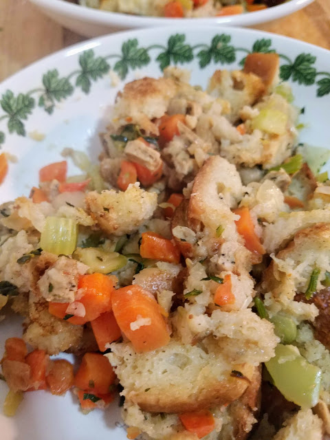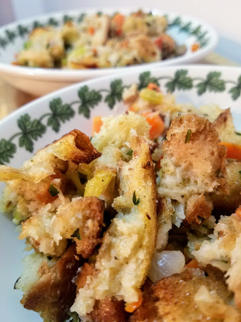 I’m calling this a stuffing casserole because it includes carrots and sausage, which are not typical stuffing ingredients. I added those ingredients because I wanted to eat this as a stand alone dish with enough substance and nutrition to make it acceptable. 😂 I think I succeeded, but please see for yourself!