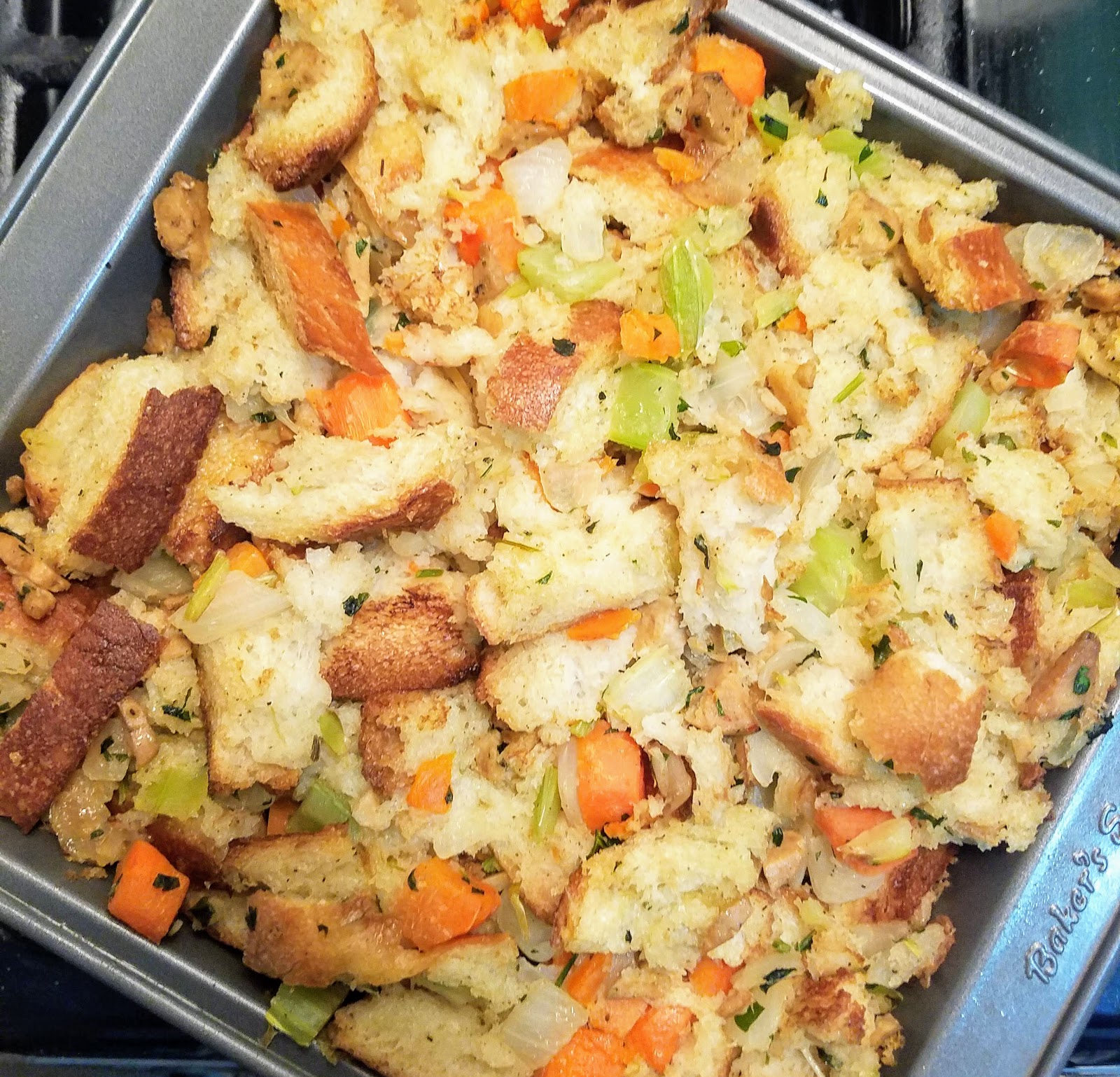 Stuffing! The absolute highlight of Thanksgiving, without a doubt. It’s truly undeniable that stuffing makes the entire meal and is what everyone is really looking forward too. It’s seems so backwards that most people probably never eat stuffing outside of the Thanksgiving meal + leftovers, especially since it is so universally beloved!
