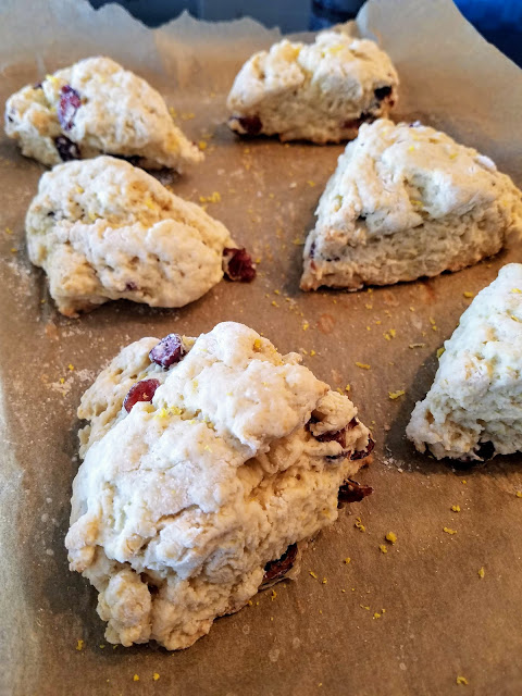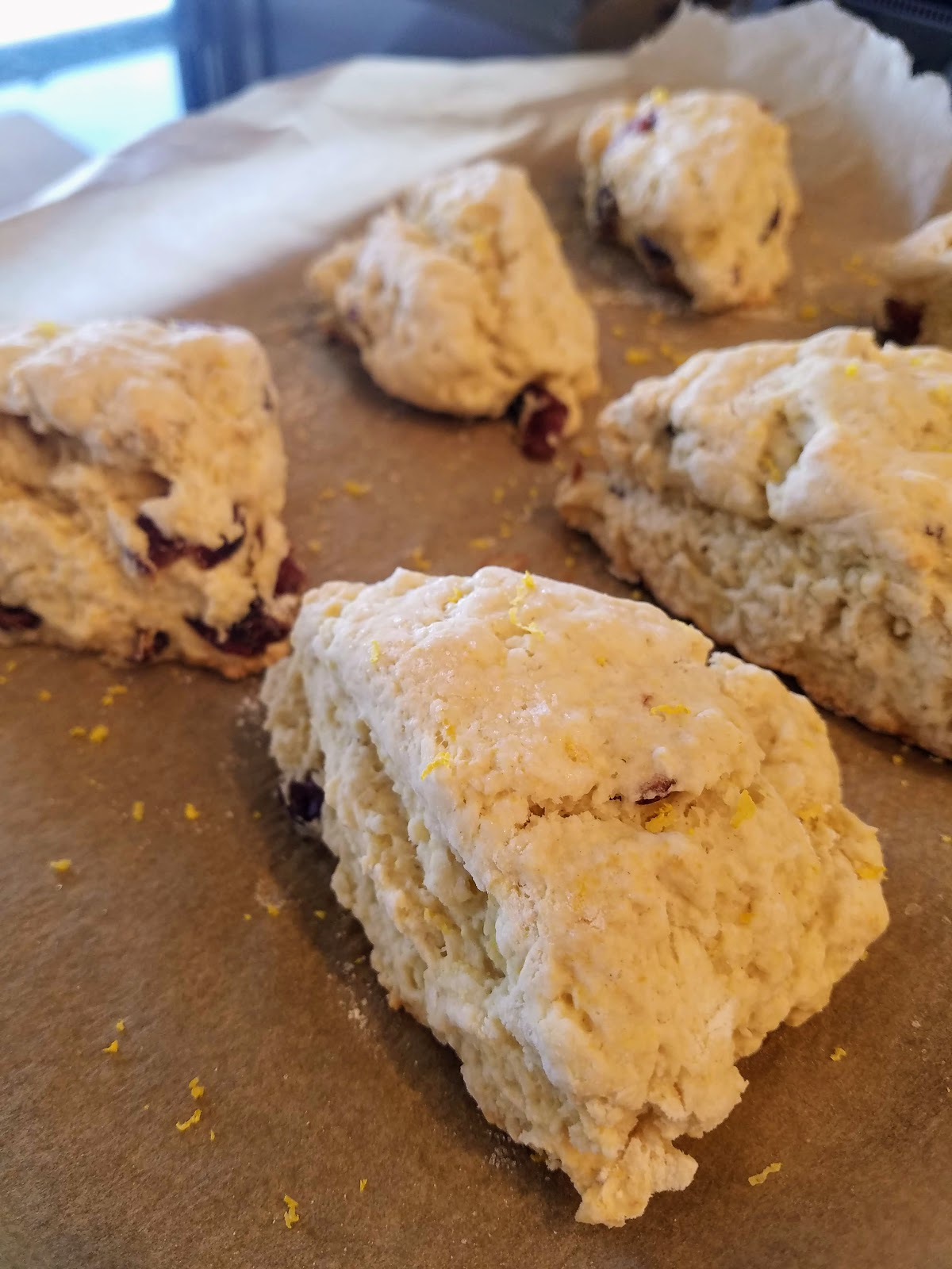 I really recommend trying the tart + sweet combo of lemon and cranberry. The texture of the scones is fluffy, a perfect amount of crumbly, and not too sweet, perfect for spreading with lots of vegan butter and jam. Enjoy!