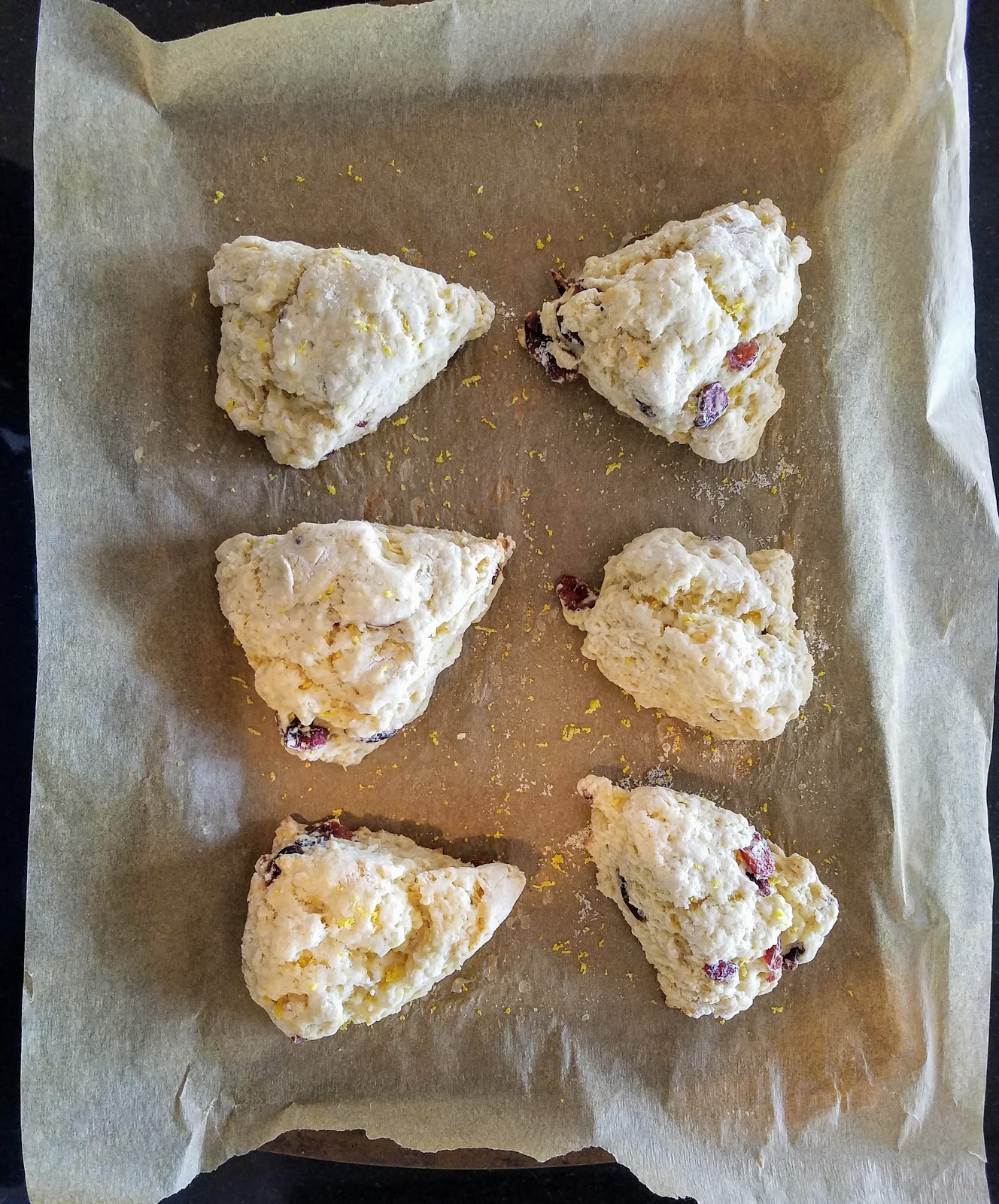 This scone recipe is basically the same as my orange chocolate scone recipe, but this time I used some dried cranberries and fresh lemon juice + zest for a new flavor combination. Honestly, you could switch them out for any flavors you are craving, like cinnamon walnut, chocolate chip, lemon blueberry, cinnamon raisin, orange cranberry, or whatever your heart desires!