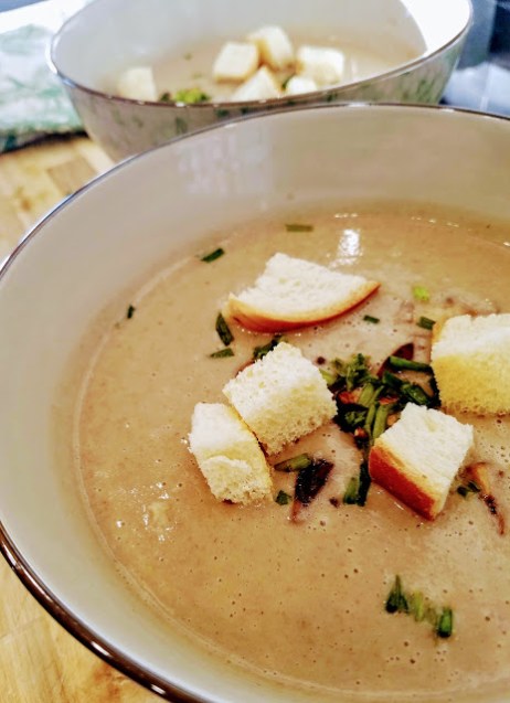 Yum yum yum this was such a delicious and easy soup (practically just three ingredients!). It felt like it could have been served at a fancy restaurant. This mushroom soup is so creamy, you will never be able tell it’s vegan! The dairy-free secret is the cream that rises to the top of the coconut milk can, but don’t worry, there is no coconut taste here; just a creamy velvety umami dream.