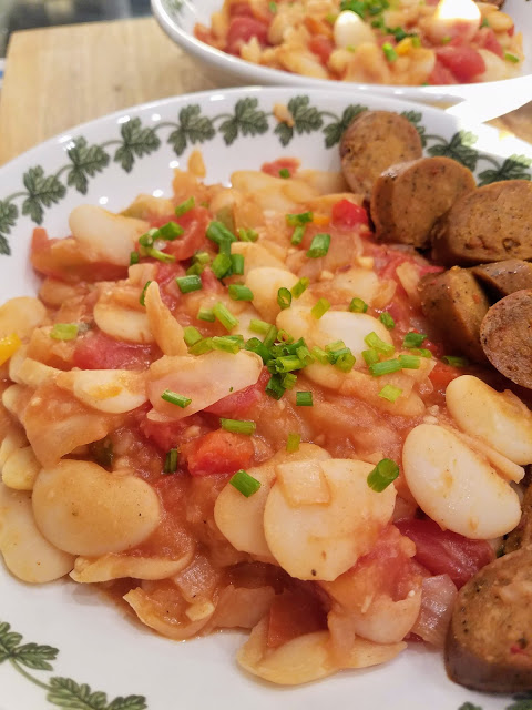 I soaked the beans for 20 hours in plenty of water (they expand a lot!), and then simmered them in water seasoned with salt and a bay leaf for 45 minutes. After that they were very tender and ready to be added to any dish.
